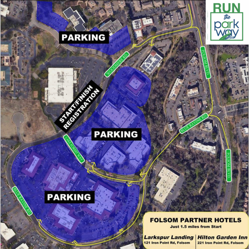 Free parking is widely available on race morning. Please refer to the blue highlighted areas on the event map for designated parking locations. Drivers may enter through Woodmere Road & Folsom Boulevard or Blue Ravine Road & Folsom Boulevard.
